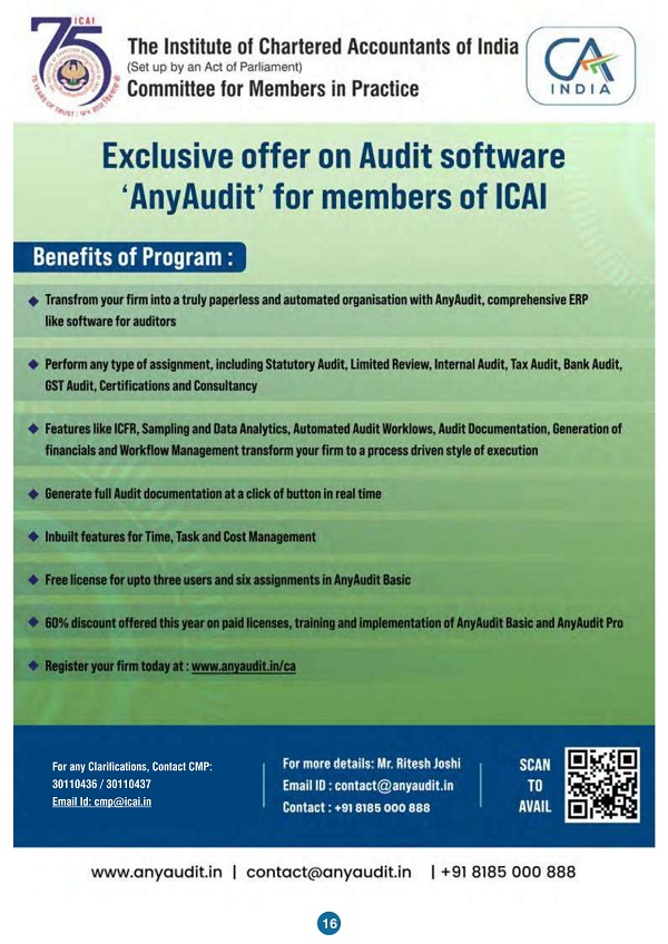 ICAI, through CMP, acts solely as a facilitator for these initiatives. All services are delivered directly by respective providers. It does not endorse or guarantee the quality, reliability, or accuracy of these offerings. Members are advised to exercise independent judgment and due diligence before availing any product or service. ICAI shall not be liable for any loss or damage arising from their use.