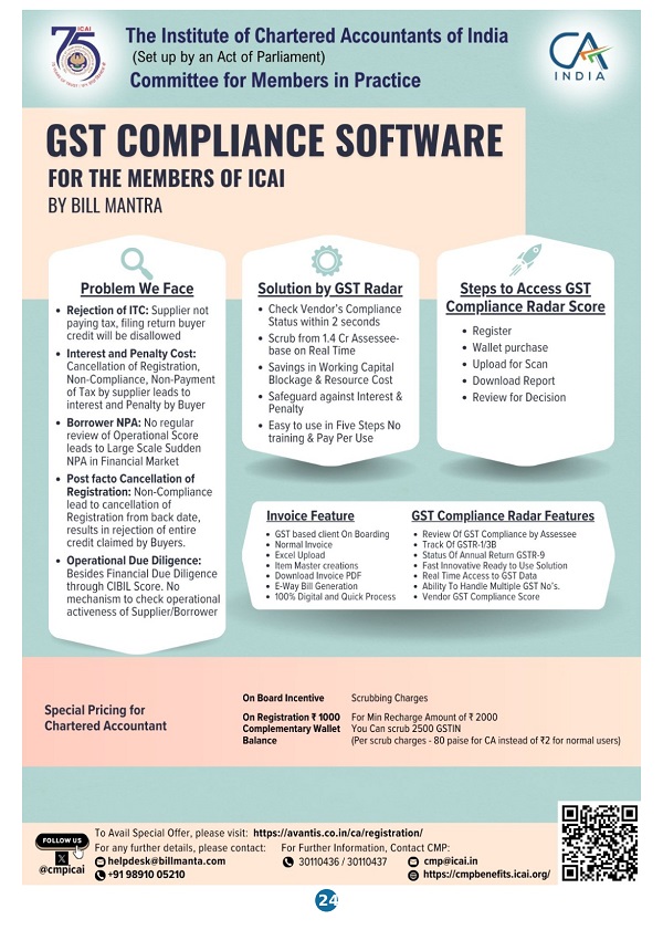 - Members may please visit https://cmpbenefits.icai.org/gst-audit-software-bill-mantra/ and register with ICAI membership details for validation.