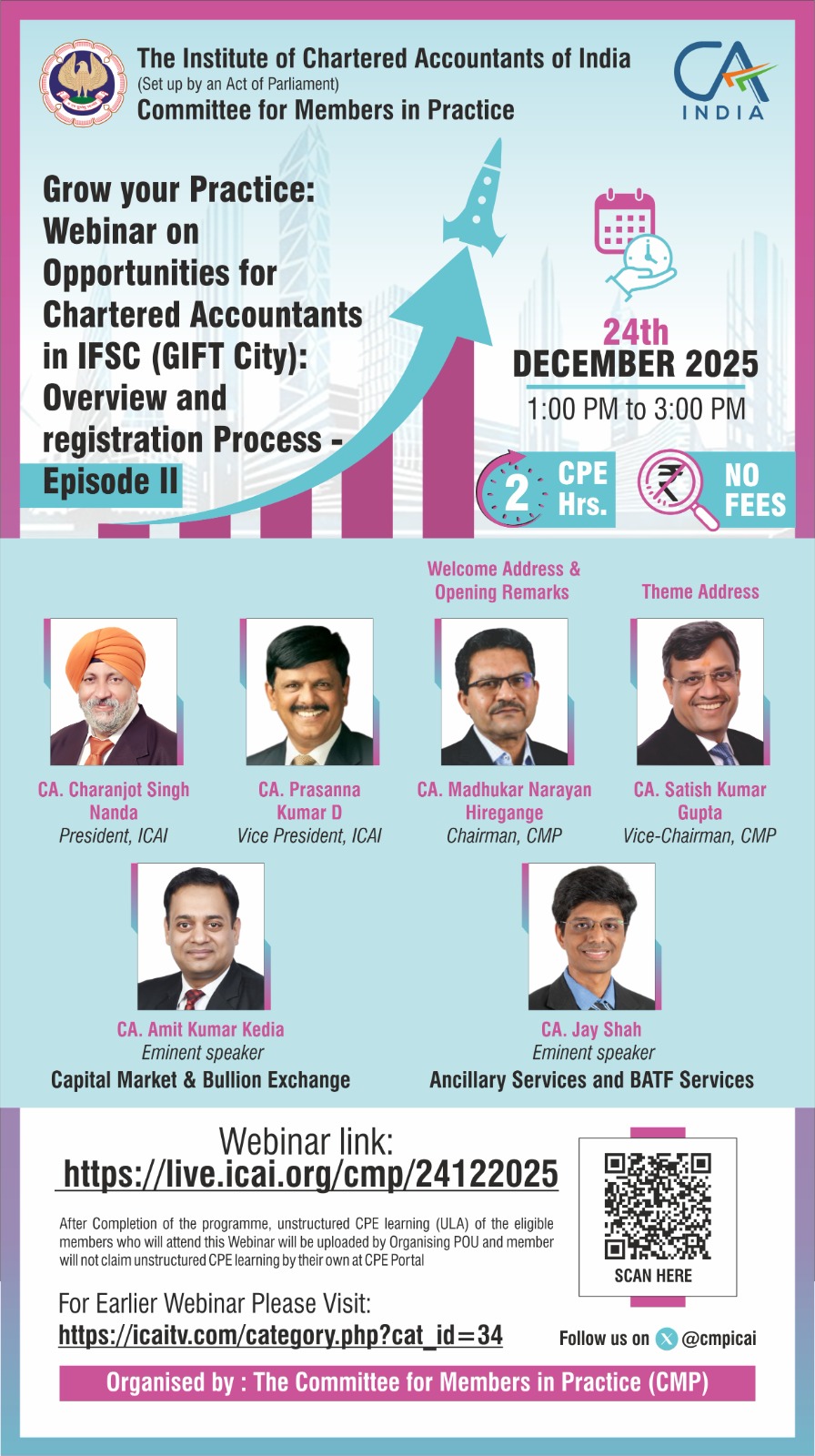 Grow Your Practice: Webinar on Opportunities for Chartered Accountants in IFSC (GIFT City): Overview and registration Process – Episode II