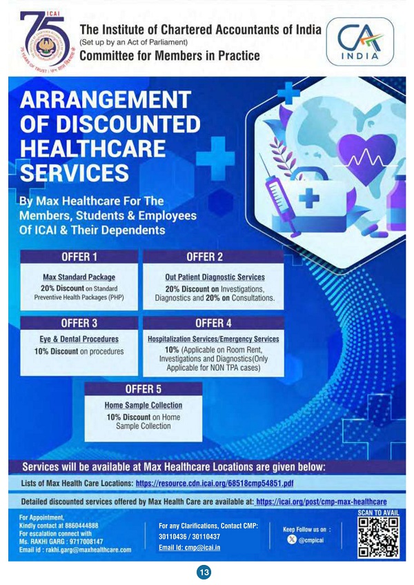 Discounted Healthcare Services by Max Healthcare services for Members of ICAI and their dependants
