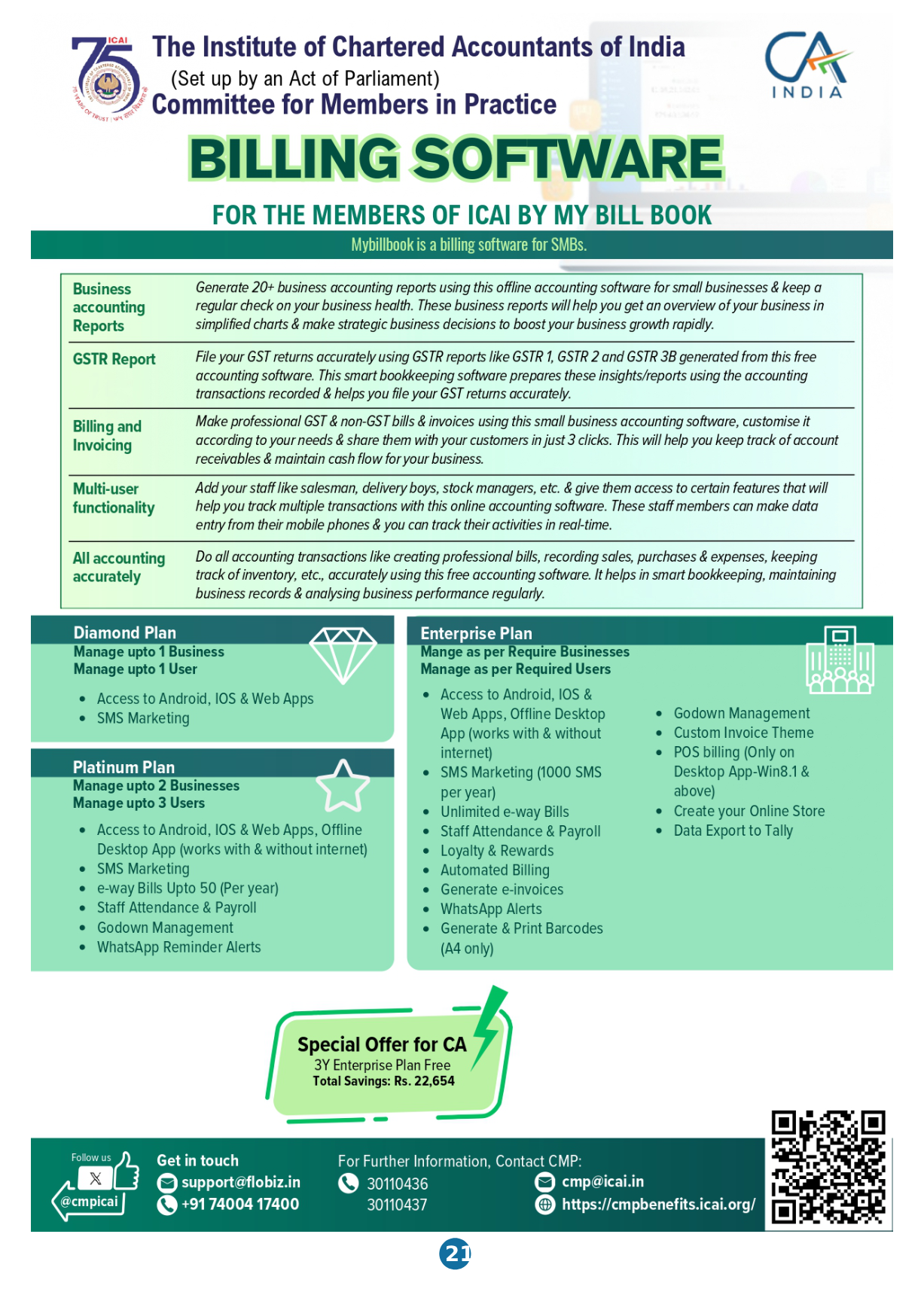 Please click here to avail this offer ( https://mybillbook.in/ca-icai)