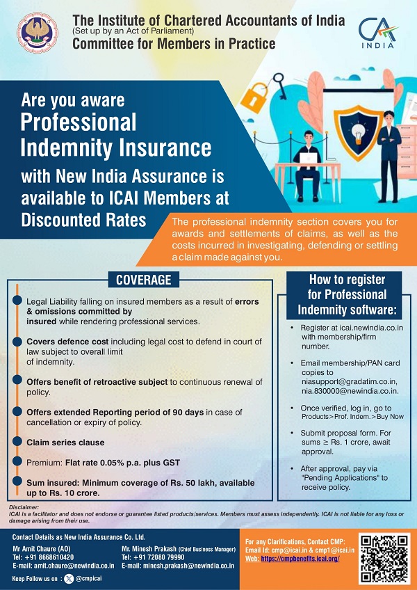 ICAI, through CMP, acts solely as a facilitator for these initiatives. All services are delivered directly by respective providers. It does not endorse or guarantee the quality, reliability, or accuracy of these offerings. Members are advised to exercise independent judgment and due diligence before availing any product or service. ICAI shall not be liable for any loss or damage arising from their use.