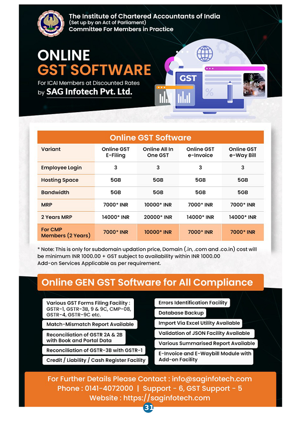 Please click here to avail this offer ( Best Offers on GST Software for Practicing Members and CA )