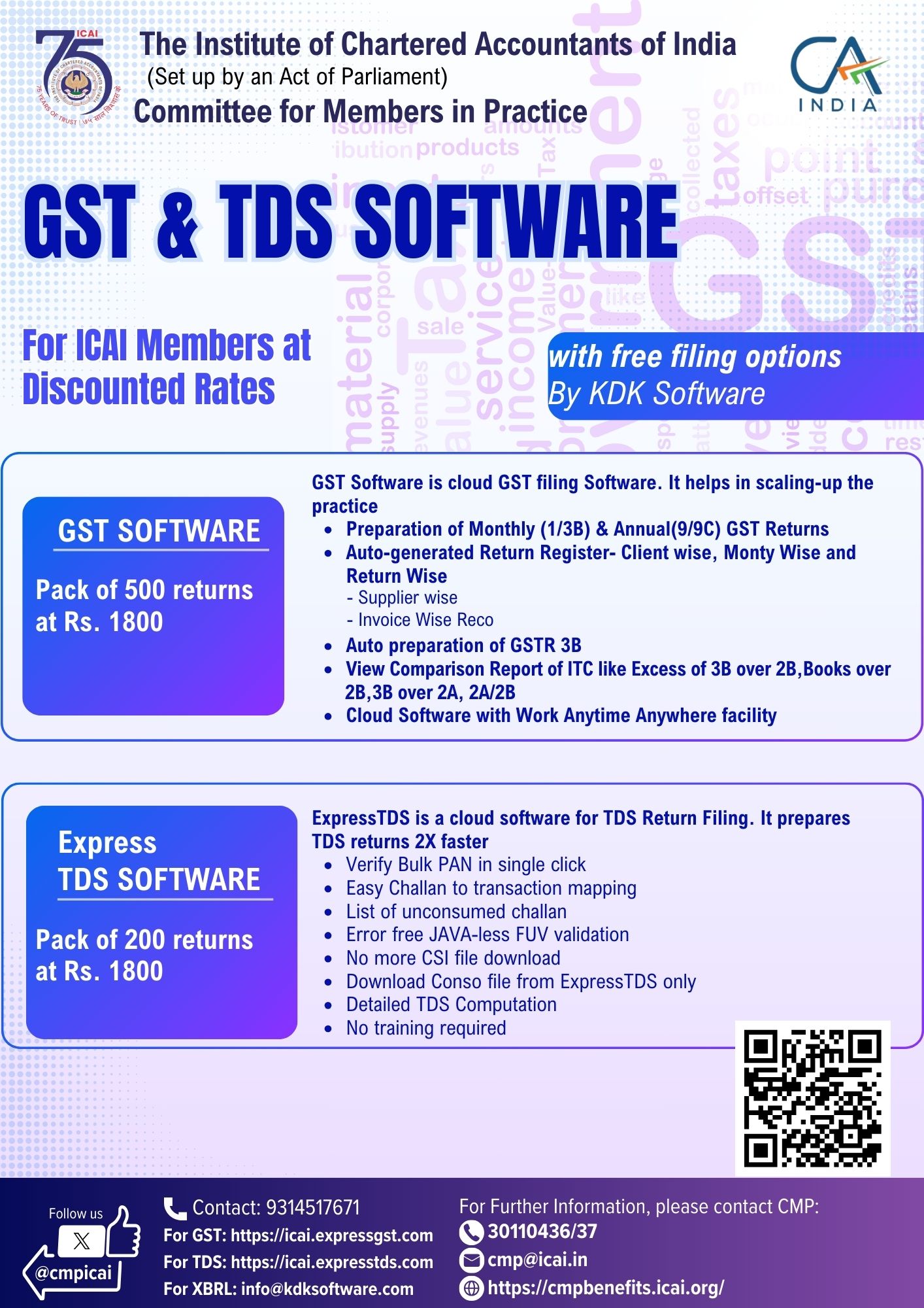 ICAI, through CMP, acts solely as a facilitator for these initiatives. All services are delivered directly by respective providers. It does not endorse or guarantee the quality, reliability, or accuracy of these offerings. Members are advised to exercise independent judgment and due diligence before availing any product or service. ICAI shall not be liable for any loss or damage arising from their use.