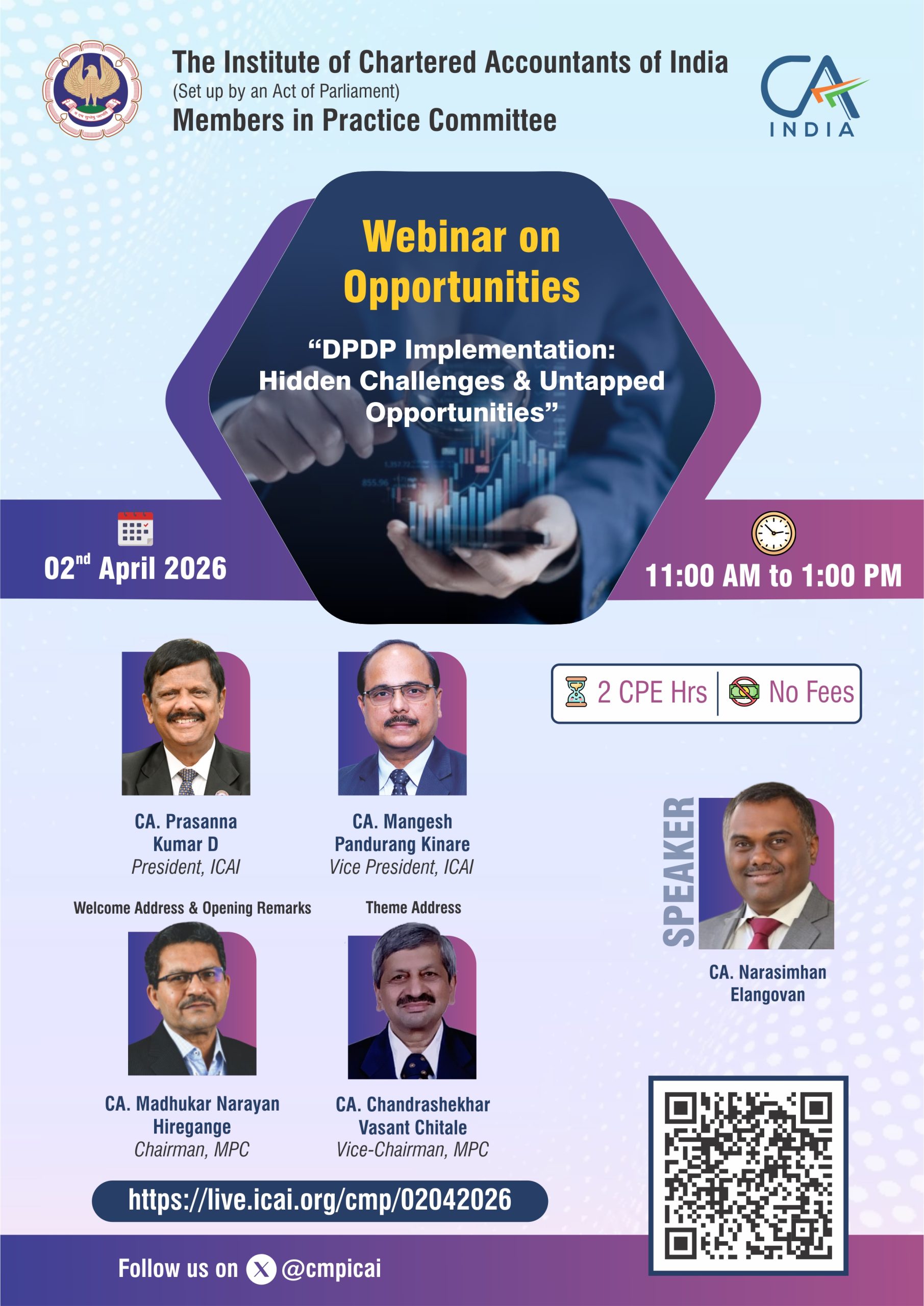 Webinar on Opportunities“DPDP Implementation: Hidden Challenges & Untapped Opportunities” organised by the Members in Practice Committee, ICAI